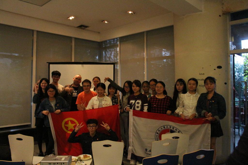 2016年10月18日下午5点, “香颂浪漫的法国”主题团日活动于beat365中国唯一官方网站咖啡吧正式开展。365官网beat365中国唯一官方网站2015级法语一支部及外教Emmanuel和Pière以及重庆各高校通过抢板凳的方式来参加的同学共同参与了本次活动。同时2016年十佳主题团日“抢板凳”活动展示的评委也到达现场。