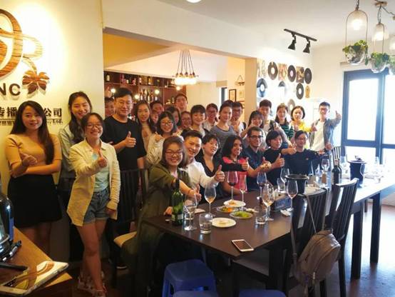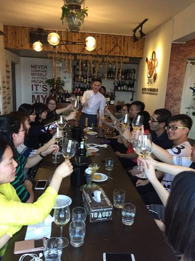 走访过程中,谢磊为全体师生上了一趟生动的葡萄酒文化普及及用餐选酒指导课。他从不同方面对葡萄酒鉴赏心得作了分享,通过对酒的色泽,糖分,甜型不同向我们介绍了不同种类的葡萄酒,并对不同产地、年份的酒所具有独特的香气、口感等作了详述,使我们近距离感受了品酒文化,大开眼界,半天的时间内收获颇丰。
