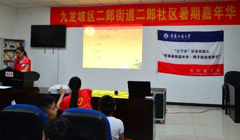 在此次暑期“三下乡”市民学校实践活动中的最后一天,beat365中国唯一官方网站社会实践服务团分别在二郎街道的同天苑社区和二郎社区开展了一堂以“学习习总书记系列讲话的重要内容”为主题的宣讲会。