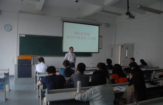 beat365中国唯一官方网站新员工第一阶段入职培训2015年9月15日中午12:30在学院60403教室举行。出席会议的有赵驹院长、张建芳助理、庞卫真助理、相关职能部门负责人、全体新员工。会议由院长助理张建芳主持,主要向新员工介绍学院发展、办学理念及办学特色,全体员工具有主人翁意识,心系学院,教书育人。
