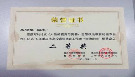 此次论坛的主题是“学习贯彻习近平总书记系列重要讲话精神,推动高校思想政治教育改革发展”,重点围绕高校思想政治教育的改革与创新这一核心问题展开深入讨论,以加强全市高校青年德育工作者之间的学习与交流。365官网辅导员朱锡斌撰写的《人性的提升与完善:思想政治教育的根本目的》一文荣获论坛优秀论文二等奖。