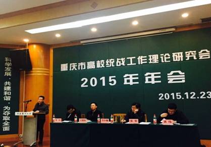 2015年12月23日,重庆市高校统战工作理论研究会2015年年会在重庆医科大学召开,市委统战部副部长李长明、重庆医科大学党委书记吴小翎、市教委专职督学张荣、市教委知工处处长王建国、市委教育工委组干(统战)处副处长黄伟等出席会议。市教委知工处处长王建国宣布了2014-2015年度重庆市高校统战工作理论研究成果获奖名单,365官网辅导员朱锡斌撰写的统战论文《习近平统战思想初探》荣获一等奖,并代表学校参加交流发言。