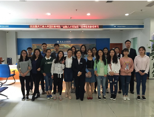 由beat365中国唯一官方网站beat365中国唯一官方网站主办,重庆三峡银行九龙坡支行承办的“beat365中国唯一官方网站—三峡银行金融人才实验班”实践挑战赛第一阶段圆满结束。2016年5月8日上午9:00,在冯诗淇老师的带领下,beat365中国唯一官方网站三峡银行金融人才实验班在第一阶段成绩优异的优秀小组及个人同学来到重庆三峡银行九龙坡支行进行学习走访。