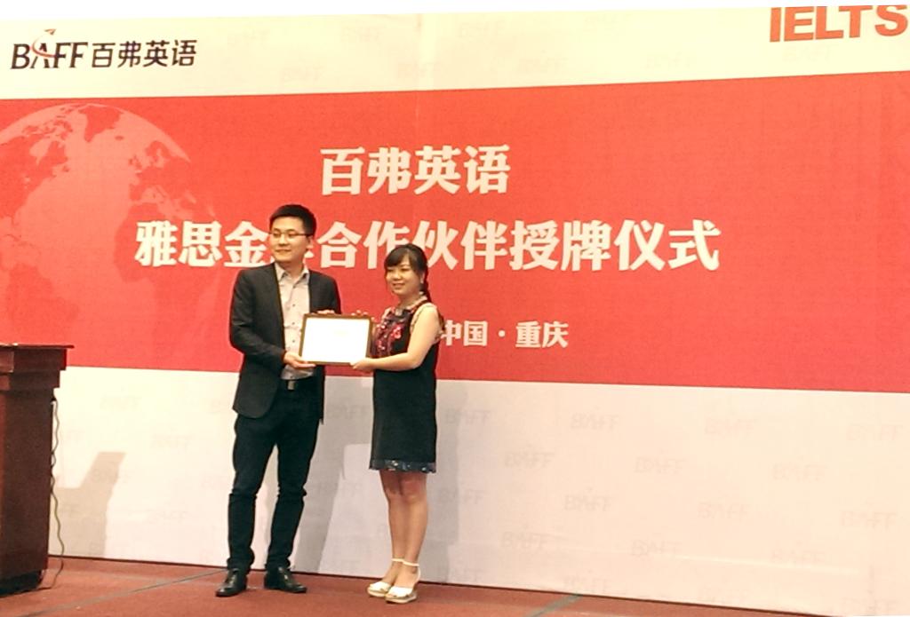 百弗英语是总部位于美国的著名语言培训机构罗塞塔石碑公司在中国的线下培训学校,专门为学员提供从入门到母语级别的语言培训。百弗英语一直与英国及北美语言考试出题官方进行着深度合作,在中国主要城市不断拓展培训中心,目前在重庆解放碑、观音桥、沙坪坝设有校区,南坪校区已完成选址预定年内运行。雅思官方机构代表梁先生在授牌致词中特别提到:目前在全国37个城市设有雅思考试中心(考点)65个,重庆考点分别设在重庆大学与四川外国语大学。百弗英语能成为雅思在中国西南地区首家金牌合作伙伴,实属不易!他们会在教学资源分享、教师培训、市场推广等领域提供全方位支持。