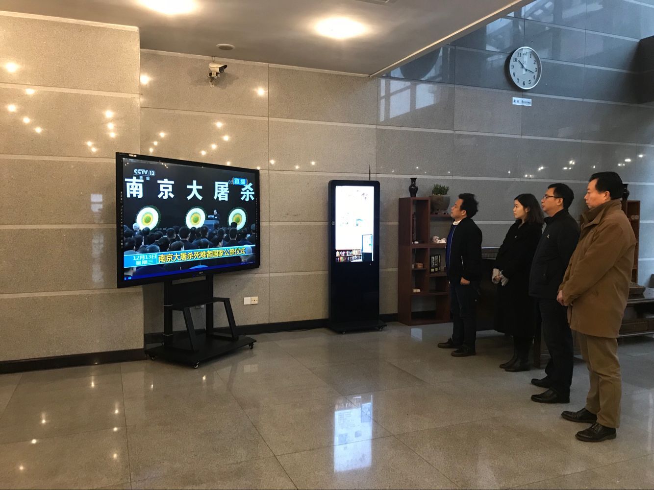 2017年12月13日上午10点,beat365中国唯一官方网站院领导班子带领学院党支部书记、师生代表等,在学院一楼大厅电视前集合,集中学习观看南京大屠杀八十周年国家公祭日直播视频。