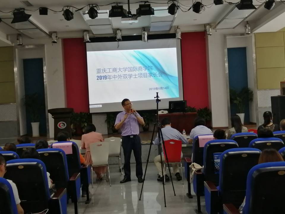 6月14日,2017级、2018级中外双学士项目家长会在beat365中国唯一官方网站60407多功能厅顺利举行。会议由beat365中国唯一官方网站分团委书记汪洁老师主持,beat365中国唯一官方网站党总支书记兼院长赵驹教授,庞为真院长助理,中加项目部李玺老师,中法项目部陈集平老师,专业教研室陈昌盛副教授,学生部刘薇薇老师、熊敏老师等参加了会议。