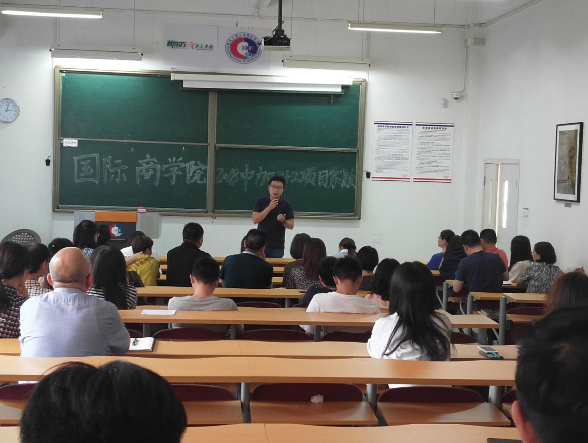 赵院长对参会家长表示了热烈欢迎,并对通过对方大学考试的同学表示祝贺,希望各位同学出国后继续努力取得更好的成绩,同时,要牢记“自己是中国人,要不忘初心,做好中外文化交流使者”。庞助理就短期外教反馈情况与学生家长做交流,并对学生提出殷切希望。汪老师和熊老师分别就学生归国取位及学生后续等工作向大家做了详细讲解。中加项目负责人李玺部长和中法项目负责人陈继平部长就项目相关注意事项做了阐述。最后由陈昌盛副教授和张翔老师介绍外方学校的总体情况,并和同学们分享了专业学习和职业发展的经验。