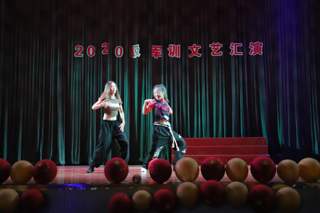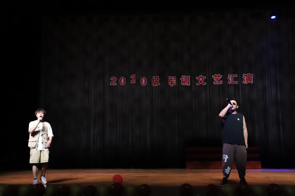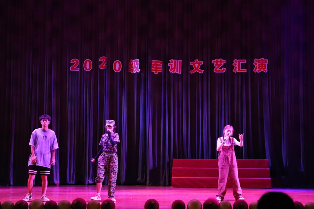 开场的是向天棋等同学带来的《中华武术》,他们舞起宝剑,静若伏虎,动若飞龙,缓若游云,疾若闪电,又稳健又潇洒。热血激昂、神采飞扬的武术表演将现场气氛烘托至高点。“我曾将青春翻涌成她,也曾指尖弹出盛夏”,一首《起风了》带来炎炎夏日中的一丝凉意,清透甜美的女声轻轻安抚着大家躁动的心,不知勾起了谁的回忆,但挥舞的荧光棒想必会是这个夏天无法磨灭的记忆。接着《百年征程 一心向党》朗诵节目将党的故事娓娓道来,从最初成立到燎原之势,从浴血奋战到最终胜利,党一路走来的脚步深重而又坚定,前辈们的丰功伟绩不断指引着我们,时刻提醒着我们要做勇担时代大任的新时代青年,努力为党和人民谋发展,为中华民族谋复兴!蒲隽逸同学《valentine》的说唱,态度十足,引得现场欢声雷动。随后是妙趣横生的小品表演《A计划》,舞台上同学们语言诙谐,表演绘声绘色,让观众们拍手叫绝。麦欣瑶、李小沅、毛怡同学的舞步踏着鼓点,观众的目光被聚光灯下的舞者所吸引。“要等待,我的爱,陪你永不离开,因为会有那么一天”,张作帅同学带来的《会有那么一天》余音绕梁,打动人心。杨天麒、石嘉恺同学的《朗诵》节目迎合潮流,雅俗共赏。最后,一首《沧海一声笑》豪气万丈,文楚帅和金典两位同学向我们营造了“江山笑,烟雨遥”的侠客氛围,军训汇演也在这超脱世俗的江湖气中落下帷幕。