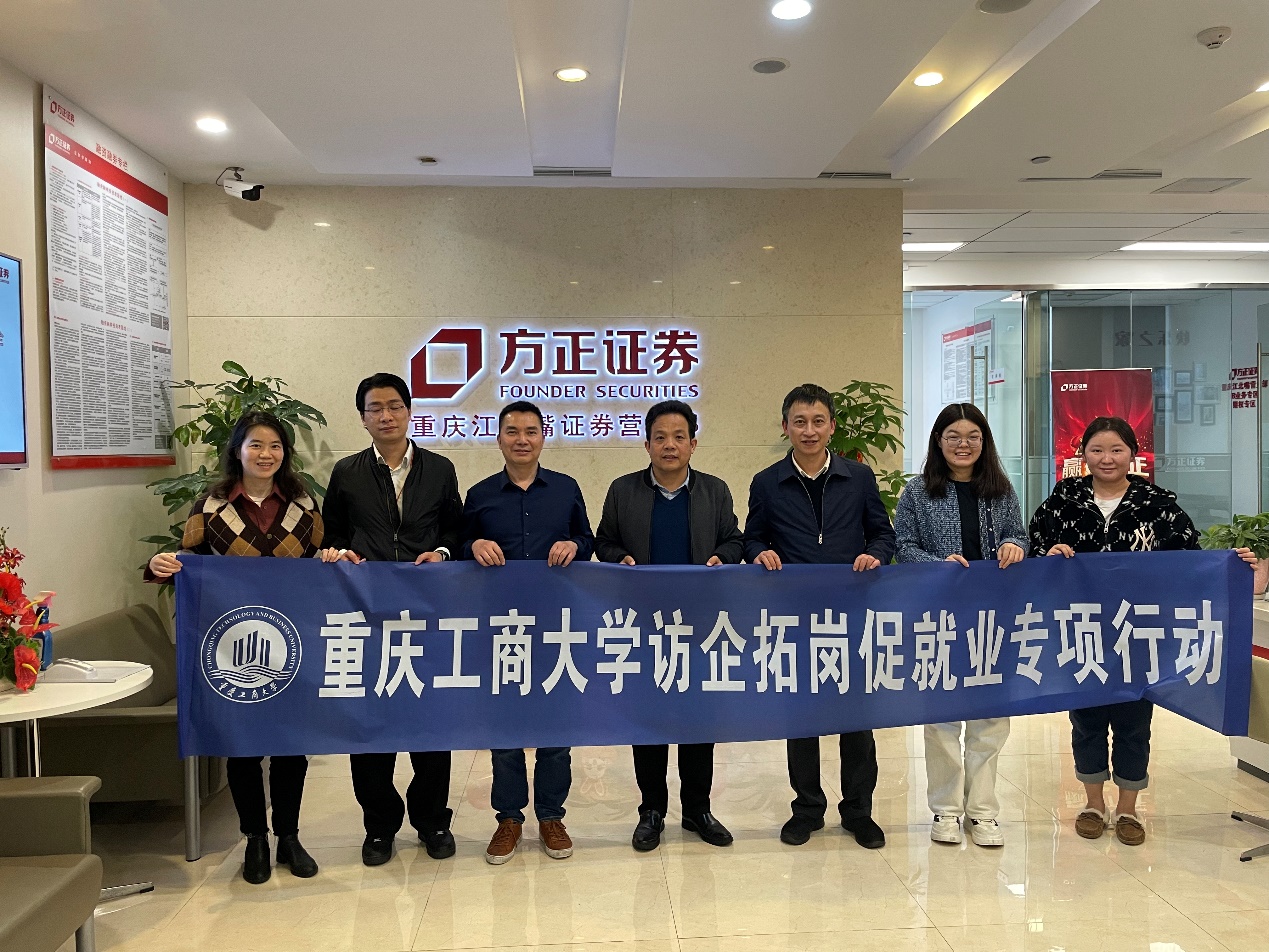 3月29日,beat365中国唯一官方网站党总支书记黄谦、院长李大鹏带队前往方正证券重庆江北嘴营业部调研并开展“访企拓岗”促就业专项工作,学院副书记杨倩、英语教研室主任陈京晶、就业联络员彭丹参与走访调研。方正证券股份有限公司重庆江北嘴证券营业部总经理曾健、财富与机构业务总监王骞参加了本次座谈。